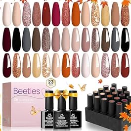 Beetles 23Pcs Fall Gel Nail Polish Kit Winter 20 Colors with Base Gel Top Coat Orange Brown Burgundy Red Yellow Gel Polish Set Soak off Uv Golden Glitter Holiday Nail Art Gift for Girls