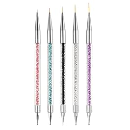 Nail Art Brushes, 5pcs Nail Liner Brushes Double-Ended Acrylic Nail Brush 5/7/10/12/15mm Nail Art Striping Brushes and Nail Dotting Pens for French Nail Tip