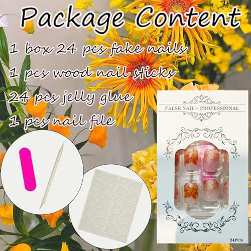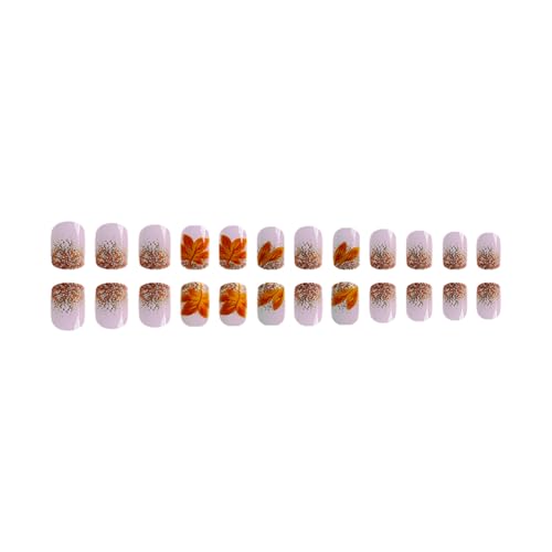 Fall Nails Kit : 24 PCS ,12 different sizes of Thanksgiving press on nails , 24 jelly glue, 1 nail file, 1 wooden stick. A full range of tools meet all your wearing needs. It can be worn repeatedly so that you can replace it at any time