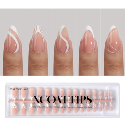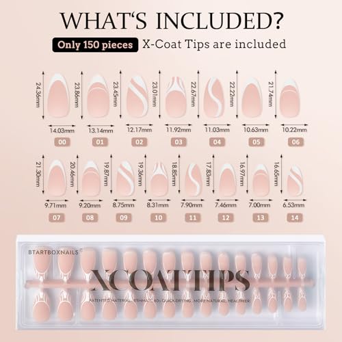 BTArtbox Press On Nails Almond – 5 Styles XCOATTIPS French Tip Almond Nails, Pre-Designed Swirl Soft Gel Nail Tips, Ultra Fit Medium False Nail, Soak Off Acrylic Fake Nails Extensions